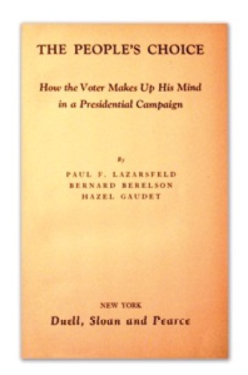 Lazarsfeld wurde ein Pionier der Wahlsoziologie und der Soziologie von Massenmedien. In seinem Buch "The People´s Choice" (1944) untersuchte er die Prozesse der Meinungsbildung im amerikanischen Wahlkampf von 1940. Lazarsfeld hatte schon in Wien die soziale Wirkung des Radios untersucht und wurde in Amerika zu einem der wichtigsten Forscher über Massenmedien. In seinem Buch "Personal Influence" (1955) zeigte er, dass die Medien die Meinungsbildung der Bevölkerung oft nicht direkt beeinflussen, sondern das Denken der Menschen über den direkten sozialen Kontakt zu sogenannten