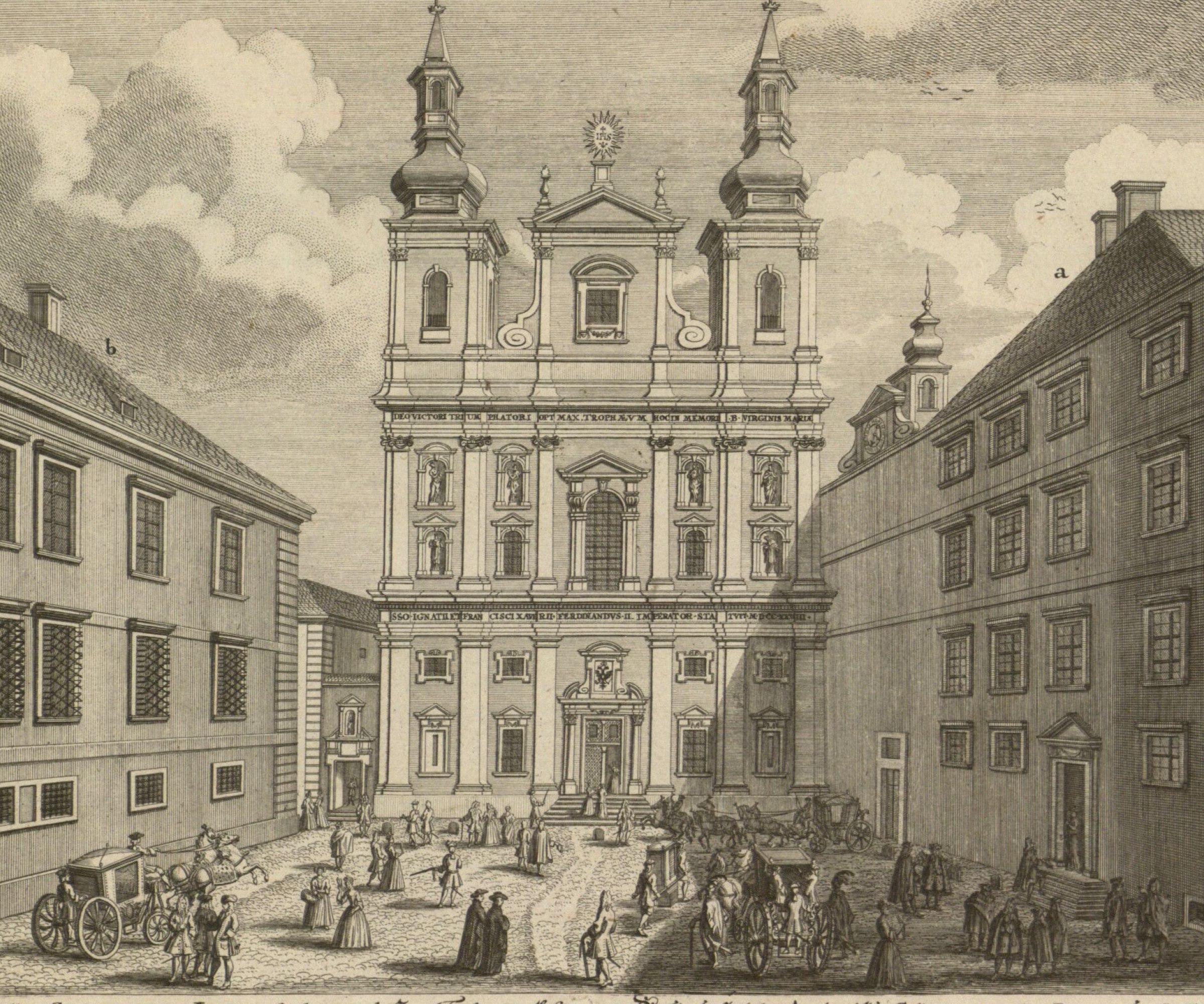 Mit der „Pragmatischen Sanktion“ vom 9. August 1623 übertrug Kaiser Ferdinand II. den Jesuiten die Lehrkanzeln der Theologischen und der Philosophischen Fakultät und beauftragte sie, an der Stelle des alten Herzogskollegs und einiger Bursen ein neues Akademisches Kolleg samt Kirche zu errichten. Die Planung war rasch abgeschlossen. Man orientierte sich an mittelalterlichen Vorbildern wie etwa dem Spanischen Kolleg in Bologna und passte diese den zeitgemäßen Erfordernissen an. Es waren neben der Kirche, Hörsäle, eine Bibliothek, ein Observatorium und ein Refektorium sowie Klassenzimmer für die Lateinschule, Wohn- und Wirtschaftsräume, Ställe aber auch ein repräsentativer Saal für Versammlungen, festliche Anlässe und Theateraufführungen vorzusehen.