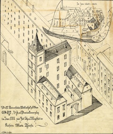 Der Ansturm auf die neue Universitätsbibliothek im alten Universitätsviertel führte zu einem überfüllten Lesesaal, den die Studenten bald als „Heringstonne“ bezeichneten. Der bereits baufällige Standort im Bibliothekstrakt des ehemaligen Akademischen Kollegs machte neben der angesprochenen Raumnot einen Um- und Ausbau mehr als erforderlich. Doch die Umsetzung des Vorhabens ließ auf sich warten. Erst 1827 wurde mit dem Bau begonnen, der weitreichende Veränderungen vorsah. Leopoldo della Santas 1816 verfasstes Werk „Della costruzione e del regolamento di una pubblica universale biblioteca“, ein frühes Standardwerk der Bibliothekswissenschaft, hatte dabei großen Einfluss. Als Hauptansatz schlägt der Autor die Trennung von Buch, Leser und Bibliothekar vor und fordert die Errichtung von eigenständigen Benutzungs-, Verwaltungs- und Depoträumen. Seine einleitenden Worte besagen Folgendes: „Die öffentlichen Universalbibliotheken bewahren in ihren Büchern alles menschliche Wissen und bieten Gelegenheit, es zu erlernen. Aus diesem Grund müssen sie in der bürgerlichen Gesellschaft zu den notwendigen Einrichtungen gehören, die einen der ersten Plätze einnehmen. Ihre Gestaltung verlangt große Überlegung. Bei vielen der bestehenden Bibliotheken stellte ich zahllose Missstände zum Nachteil der Bücher, zum Ärger der Benutzer und zur Unbequemlichkeit und Behinderung der Tätigkeit der in ihnen Beschäftigten fest.“ Den Lösungsansatz zur Trennung dieser drei Bereiche setzte man beim Umbau der Universitätsbibliothek Wien um. Bücherspeicher und Lesesäle wurden ausgebaut, während neue Arbeits- und Wohnbereiche für das Bibliothekspersonal entstanden. 1829 erstrahlte die Universitätsbibliothek Wien in neuem Glanz.