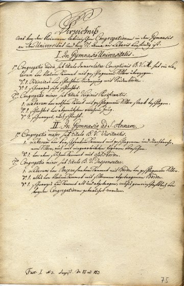 Archivum Austriae Societatis Iesu (Jesuiten in Zentraleuropa, Regionalarchiv Wien) Sign. 2111516, Historia Congregationis Beatae Mariae Virginis in Coelos Assumptae ex quatuor academicis facultatibus congregatae secundo saeculo 1679‒1783.
