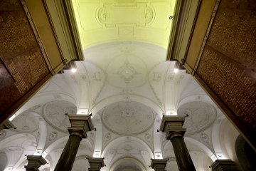 Auf einer dritten Ebene wird die gesamte Nische, in der sich die Rektorentafel seit 1893 befindet, durch eine goldgelbe Ausleuchtung der darüber befindlichen Kuppel verfremdet, separiert, aus dem hellen Ambiente der Aula abgesondert und hervorgehoben.