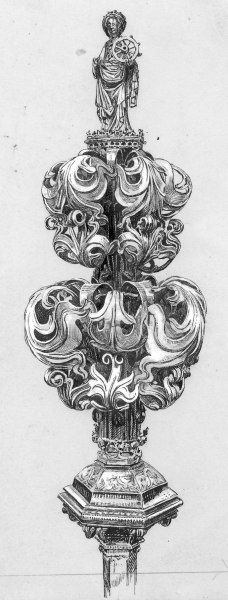 Von einem Augsburger Goldschmied wurde der zylindrische Silberstab (126 cm) im Jahre 1601 um 150 Gulden angefertigt. Seine fünf Knäufe sind vergoldet, die Bekrönung bildet ein kelchförmiger Sockel, auf dem die vier Evangelistensymbole (Engel, Stier, Adler, Löwe) stehen. Auf der darüber befindlichen Deckplatte befindet sich die Statuette des hl. Evangelisten Johannes, des Patrons der Fakultät.