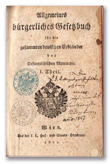 Das 1812 in Kraft getretene Allgemeine Bürgerliche Gesetzbuch galt (mit zum Teil wechselndem Geltungsbereich) in großen Teilen der Donaumonarchie. Mit dem Code Civil in Frankreich (1804) bildet der Gesetzestext eine der ältesten noch gültigen Zivilrechtskodifikationen. Die französischen und österreichischen Zivilgesetzbücher veränderten die europäische Rechtskultur und brachten die Aufklärungsidee der Anerkennung unveräußerbarer Rechte jedes Menschen zum Ausdruck; diese bestimmt in Form der Grundrechte bis heute unsere Rechtsauffassung.