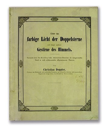 Dopplers berühmteste Arbeit über die Farbverschiebung im Lichtspektrum bewegter Sterne erschien 1842 in den Abhandlungen der Königlich Böhmischen Gesellschaft der Wissenschaften. Es war eine voraussagende epochale Abhandlung über den Einfluss der Bewegung (gegenüber einem Beobachter) einer Schall- oder Lichtquelle auf ihre Wellenlänge.
