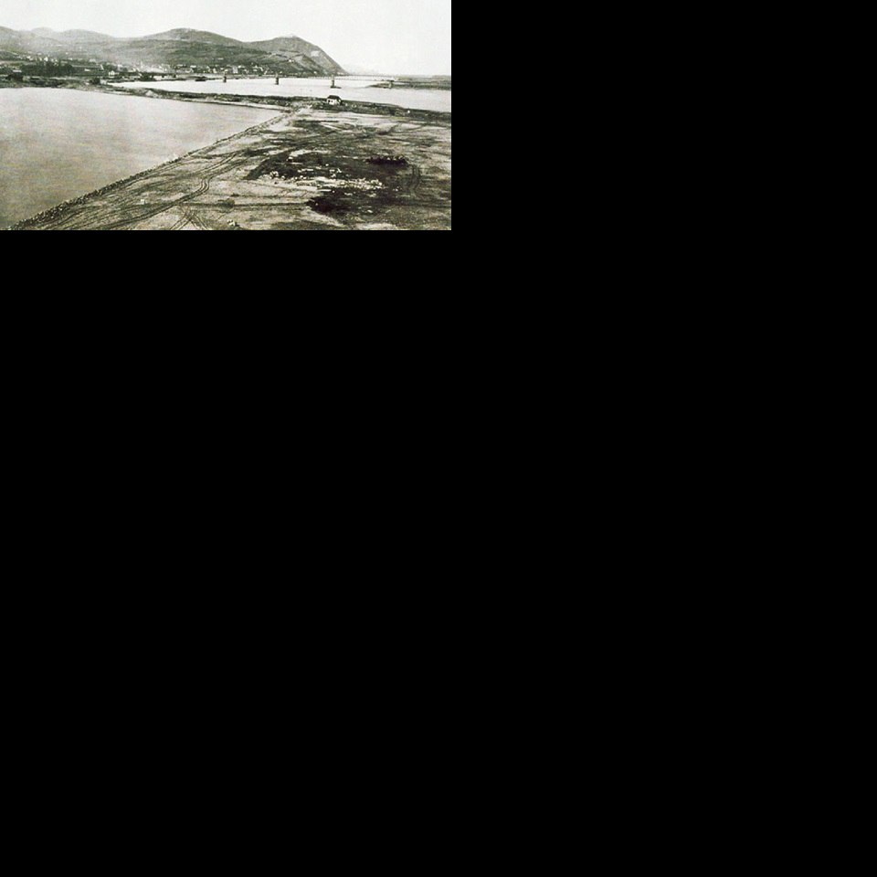 1875 wurde die Donau in einem breiten Bett gefasst. Das Bild zeigt die Donau wenige Tage vor dem Durchbruch zum neuen Flussbett. Daneben entstand ein breites Überschwemmungsgebiet.