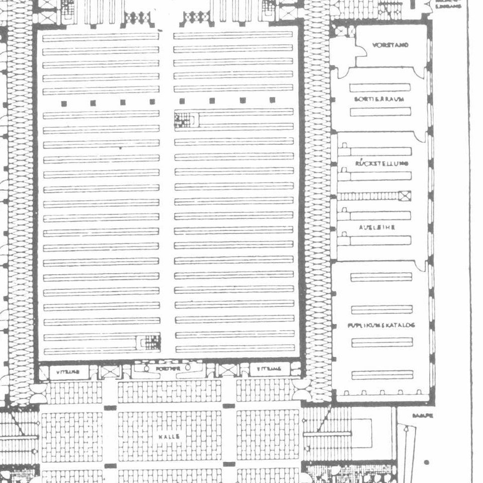 1951 Universitätsbibliothek Neubau, Grundriss Erdgeschoss (Arch. Nobis/Dreier, Wettbewerbssieger) – unrealisiert