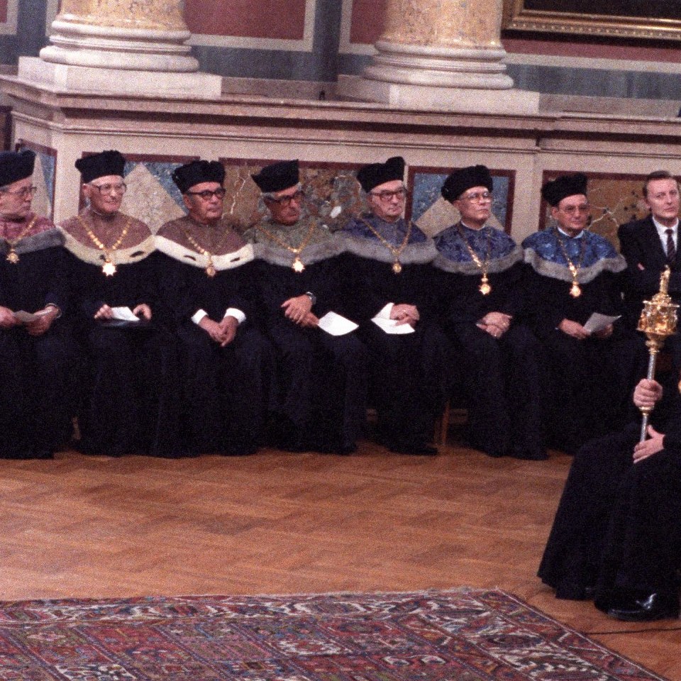 Prodekan der Katholisch-Theologischen Fakultät Univ.-Prof. Josef Lenzenweger, Dekan der Evangelisch-Theologischen Fakultät Univ.-Prof. Hans-Christoph Schmidt-Lauber, Dekan der Sozial- und Wirtschaftswiss. Fakultät Univ.-Prof. Gerhart Bruckmann, Dekan der Rechtswissenschaftlichen Fakultät Univ.-Prof. Karl Wenger, Rektor Univ.-Prof. Hans Tuppy, Prärektor Univ.-Prof. Wilhelm Holczabek, Prodekan der Medizinischen Fakultät Univ.-Prof. Arnulf Fritsch, Dekan der Grund- und Integrativwissenschaftlichen Fakultät Univ.-Prof. Johann Mader, Dekan der Geisteswissenschaftlichen Fakultät Univ.-Prof. Gerhard Oberhammer, Dekan der Formal- und Naturwissenschaftlichen Fakultät Univ.-Prof. Ferdinand Stangler, Universitätsassistent Karl Mazzucco, Universitätsassistent Richard Fischer, Vorsitzender des Dienststellenausschusses Reinhard Wanek.