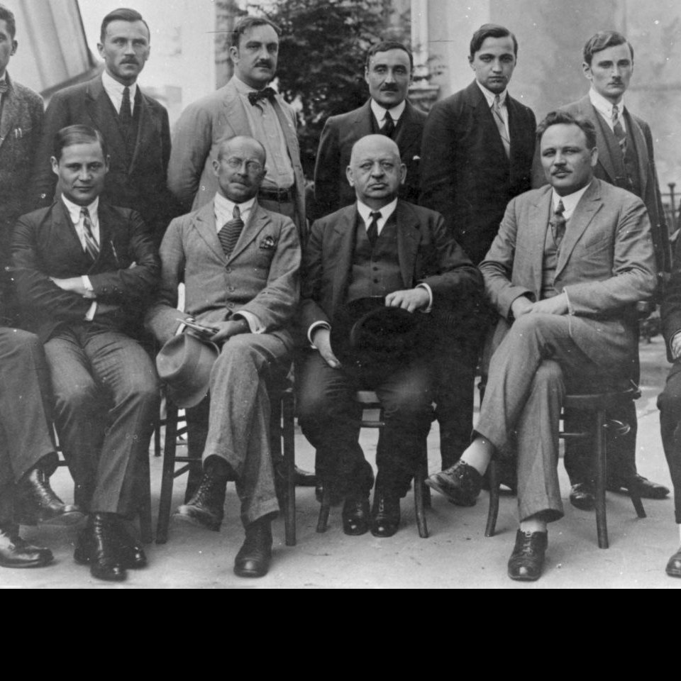 Albin Haberda (sitzend 4. von links), Tassilo Antoine (stehend 2. von links), Heinz Katz-Kahr (stehend 4. von links), Karl Meixner (sitzend 1 von links), Philipp Schneider (sitzend 2. von links), Anton Werkgartner (sitzend 2. von rechts), Stefan Jellinek (sitzend 1. von rechts)