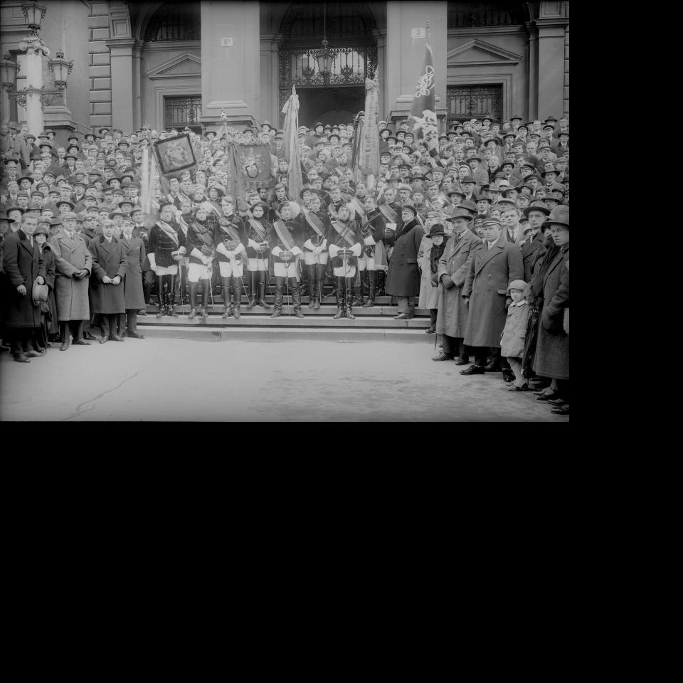 Burschenschafter im Wichs auf der Rampe der Universität Wien