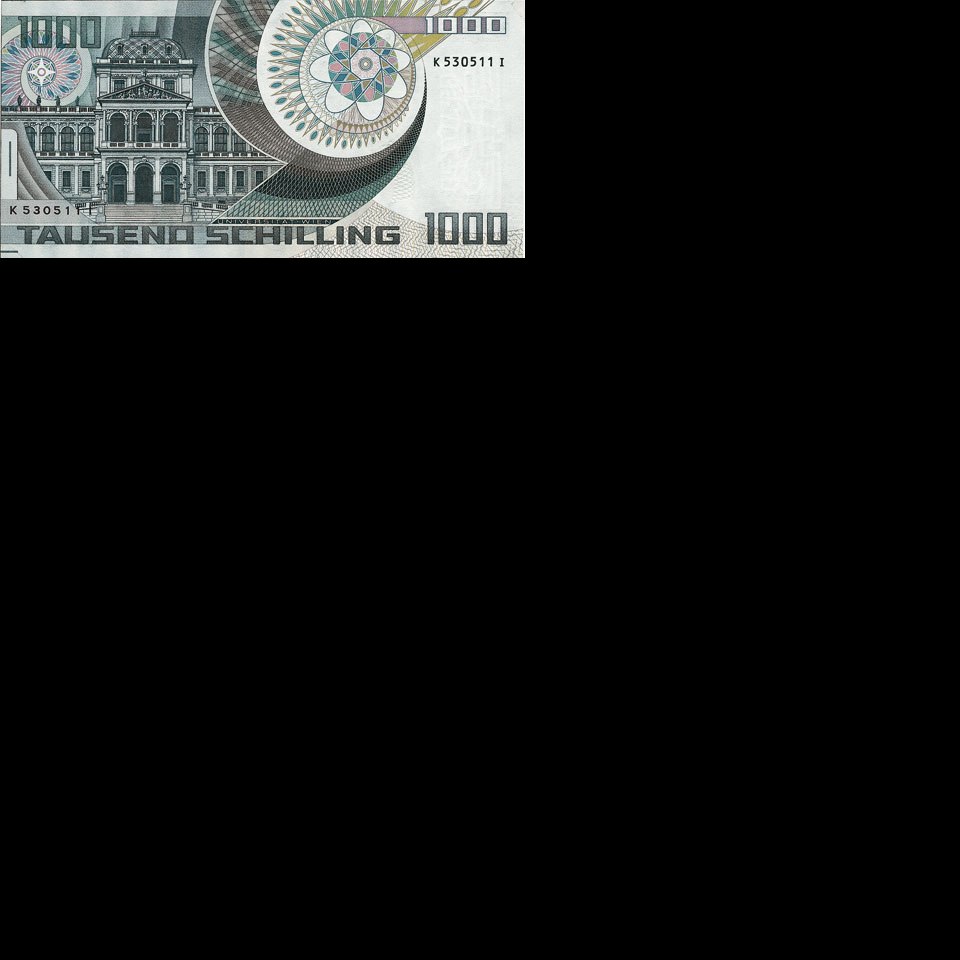 Das Hauptgebäude der Universität Wien auf der Rückseite der 1000 Schilling-Note (1983–1997) Bildgattung Banknote