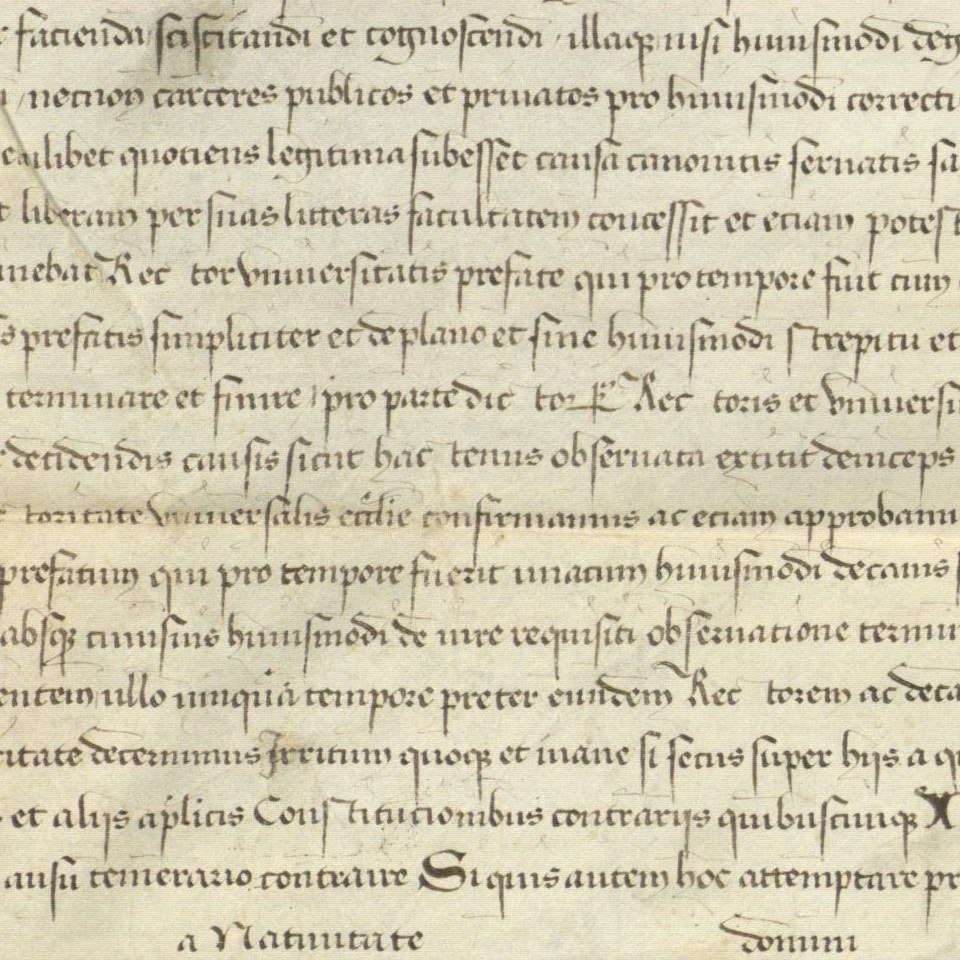 Bulle des Konzils von Basel, in der das von Papst Martin V. ausgestellte Privileg für die Ausübung der Gerichtsbarkeit "in omnibus causis civilibus, forensibus, iniuriosis et criminalibus" durch den Rektor der Universität Wien bestätigt wird.