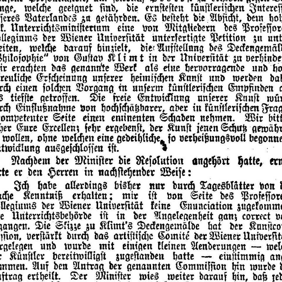 „Das Präsidium der Secession beim Unterrichtsminister“, Zeitungsartikel in „Neue Freie Presse“ vom 28. März 1900