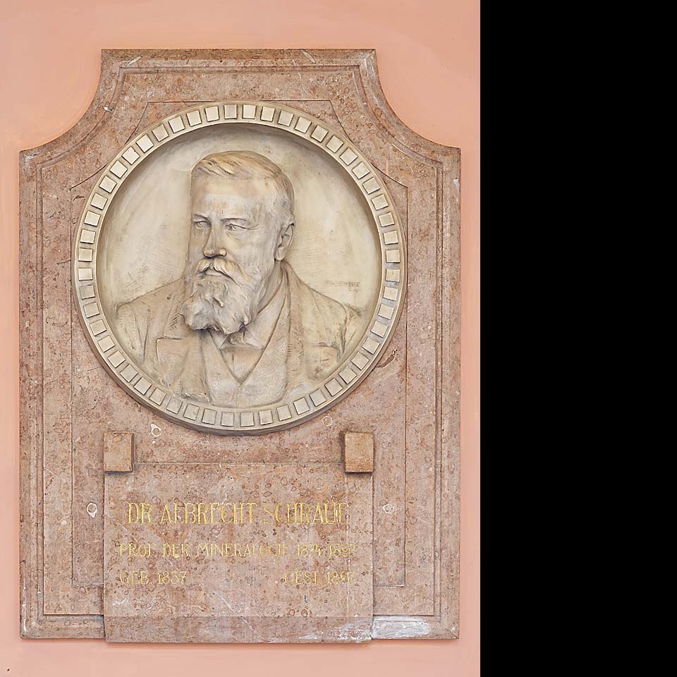 Denkmal für Albrecht Schrauf (1837–1897) im Arkadenhof der Universität Wien, gestaltet von Franz Seifert, enthüllt 1907 Bildgattung Fotografie