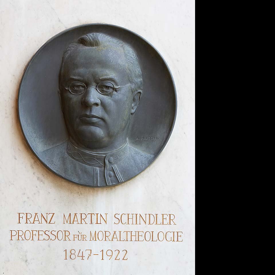 Denkmal im Arkadenhof der Universität Wien für den Theologen und Politiker Franz Martin Schindler (1847-1927) vom Bildhauer Arnold Hartig (1878-1972), enthüllt am 13. Juni 1951.