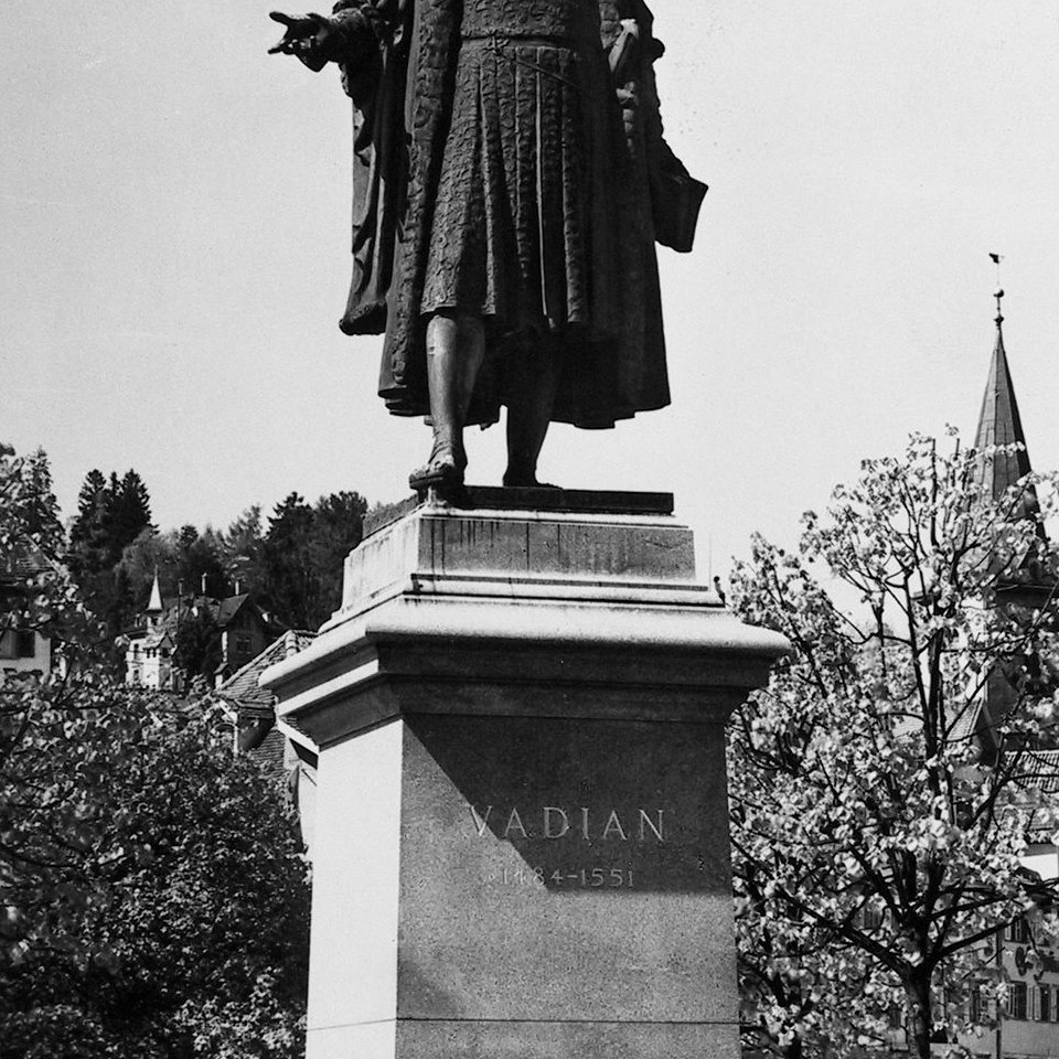 Denkmal für Joachim Vadianus (1483–1551, Humanist, Dichter) in St. Gallen Schweiz Bildgattung Fotografie