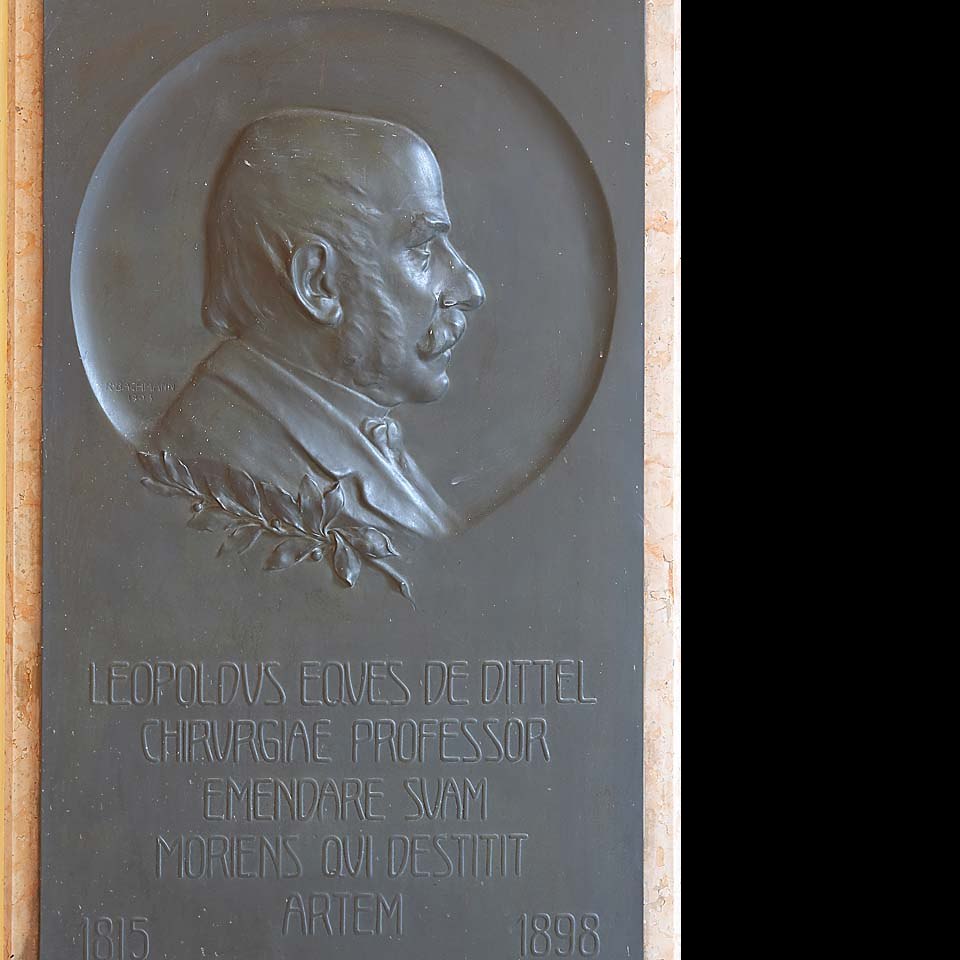 Denkmal für Leopold Ritter von Dittel (1815–1898) im Arkadenhof der Universität Wien, gestaltet von Rudolf Bachmann, angebracht 1908