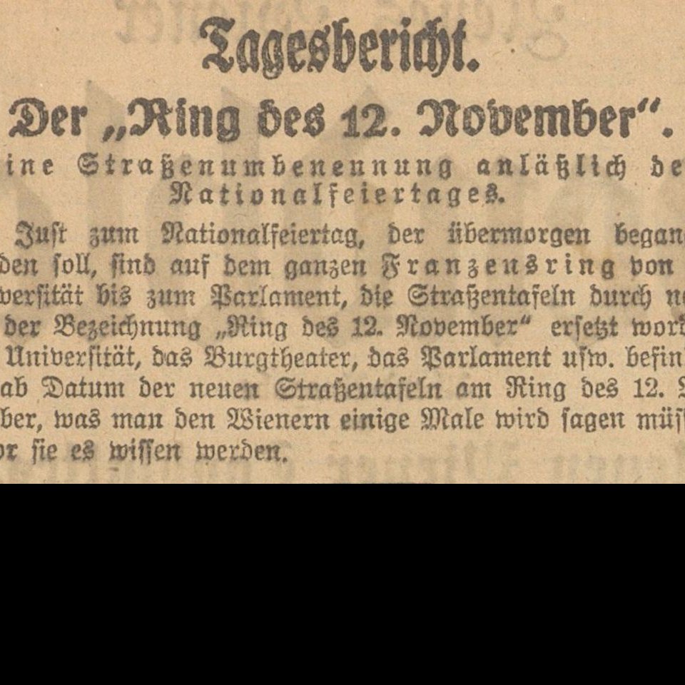 „Der Ring des 12. November“, Zeitungsartikel in Neues Wiener Abendblatt vom 10. November 1920