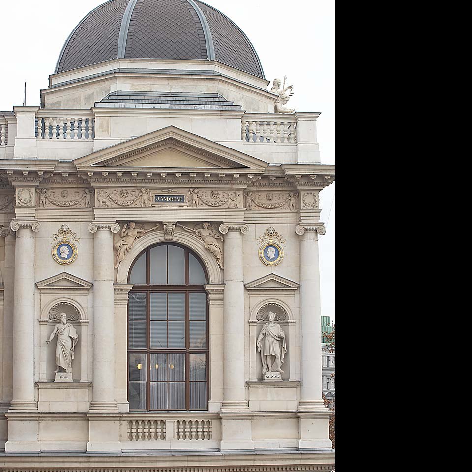 Die Figuren Solon und Justinian auf der Fassade des Hauptgebäudes der Universität Wien Bildgattung Fotografie