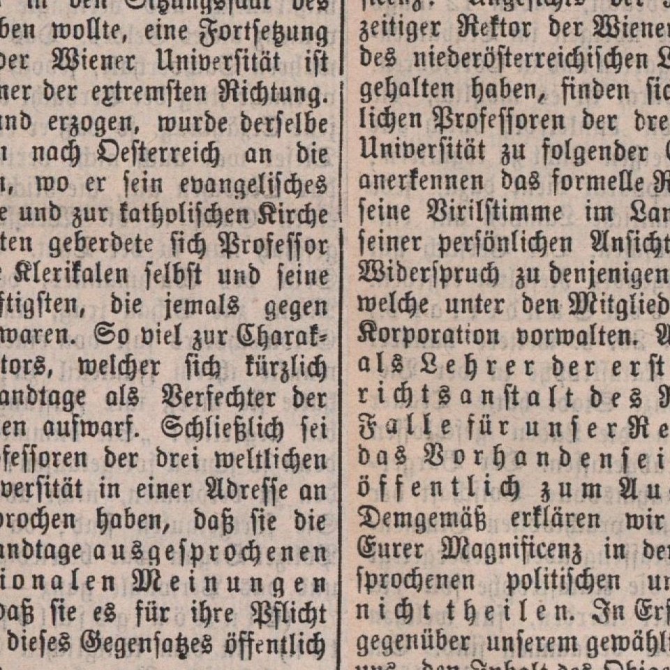 „Die Studenten-Demonstrationen gegen Universitäts-Rektor Maaßen“, Zeitungsartikel in Salzburger Volksblatt vom 25. Juni 1883