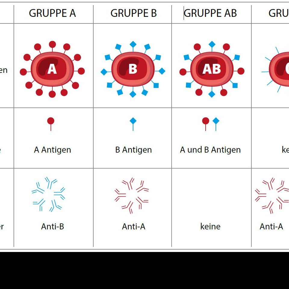 Die von Landsteiner entdeckten Blutgruppen, ihre Antigene auf der Oberfläche der roten Blutkörperchen und ihre Antikörper im Blutplasma.