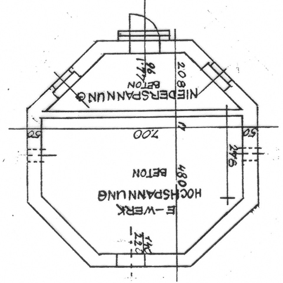 Ehemaliges Jüdisches Bethaus im alten Allgemeinen Krankenhaus Wien, Grundriss Transformatorenstation, 1971 Bildgattung Plan