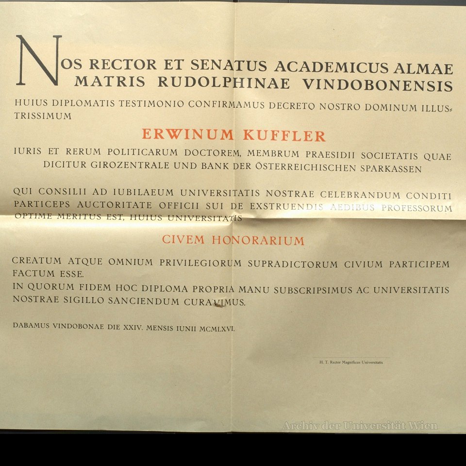 Ehrenbürgerdiplom Erwin Kuffler 1966