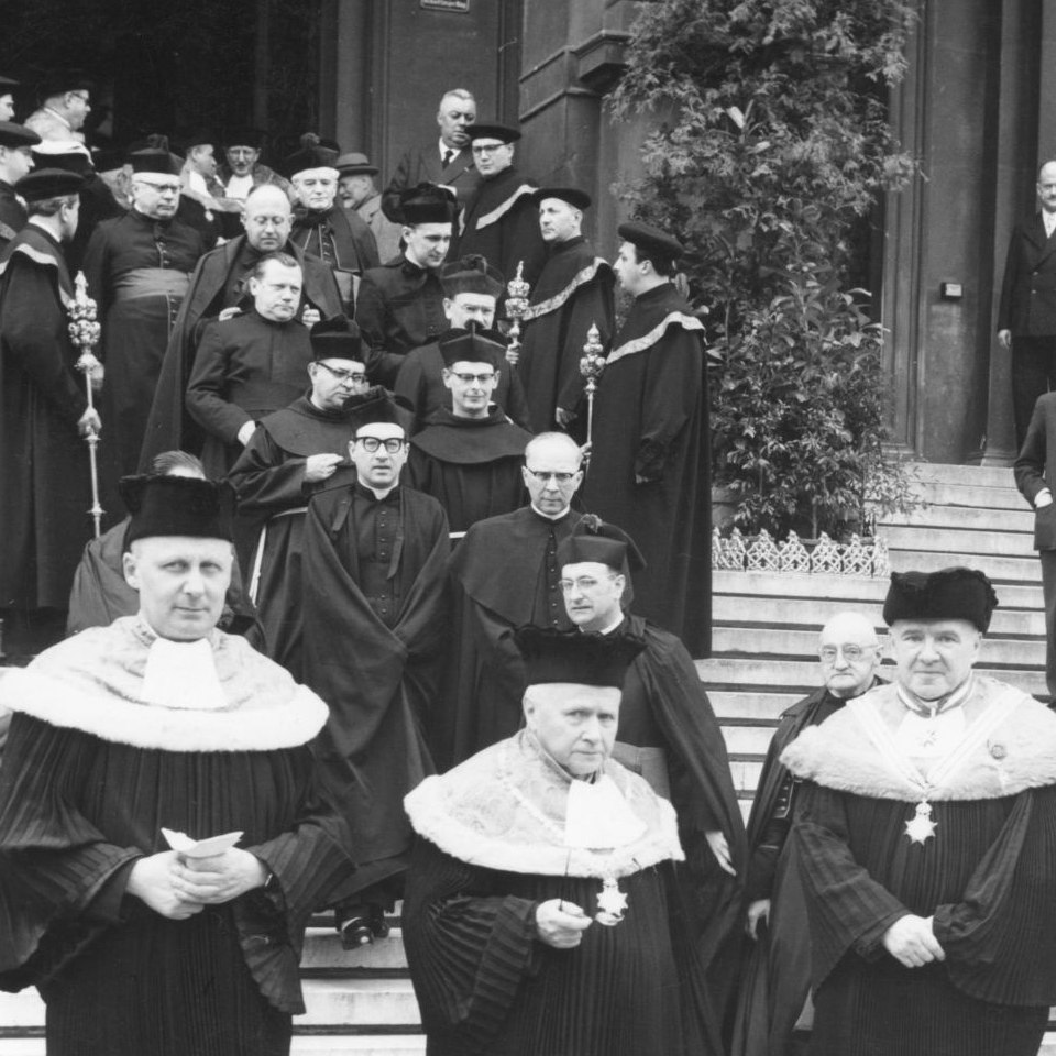 Ehrendoktorat der Katholisch-theologischen Fakultät für Kardinal Eugene Tisserant: Auszug der Festgäste, ganz vorne im Bild der Dekan der Kath.-theol. Fakultät Carl Johann Jellouschek