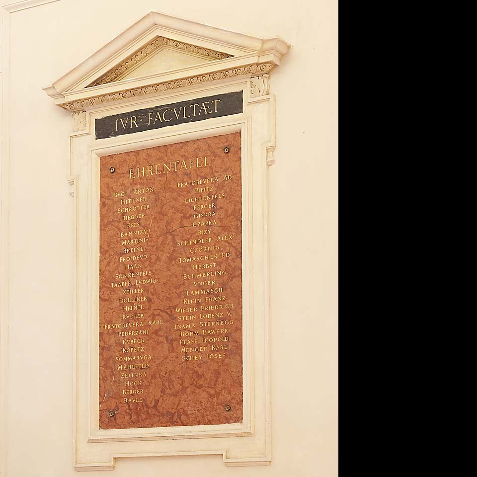 Ehrentafel der Rechts- und Staatswissenschaftlichen Fakultät, Aula der Universität Wien Bildgattung Fotografie