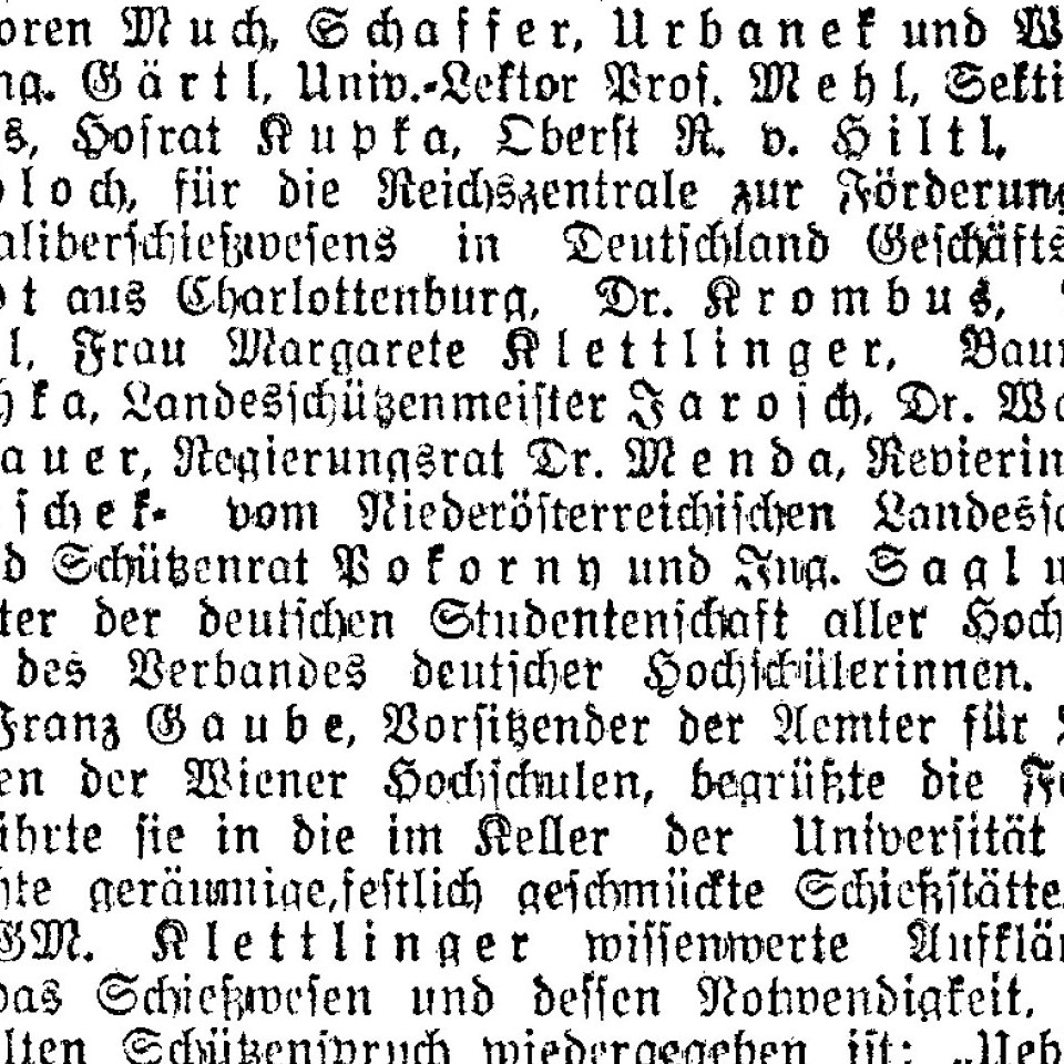 „Eine Schießstätte auf der Wiener Universität“, Zeitungsartikel in „Reichspost“ vom 15. Jänner 1927 Quelle Reichspost vom 15. Jänner 1927, Seite 4 Bildgattung Dokument