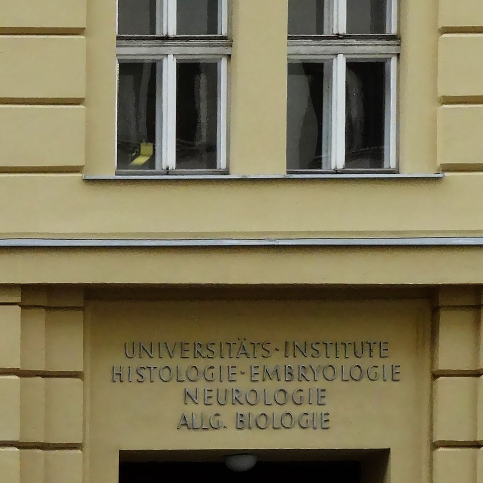 Eingang zu den Instituten für Histologie und Embryologie, Neurologie und Allgemeine Biologie, Schwarzspanierstraße 17 (Ecke Währinger Straße 13) Bildgattung Fotografie