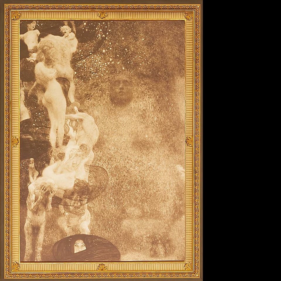 Das Gemälde von Gustav Klimt (erstmals ausgestellt in der Wiener Secession im Jahr 1900) ist eines von vier "Fakultätsbildern", die zur Ausschmückung der Decke des Großen Festsaales von der Universität Wien in Auftrag gegeben wurden. Nach massiver öffentlicher Kritik an Klimts Darstellungsweise kaufte der Künstler die Bilder zurück, die bis zu ihrer Zerstörung 1945 in Privatbesitz verblieben.
