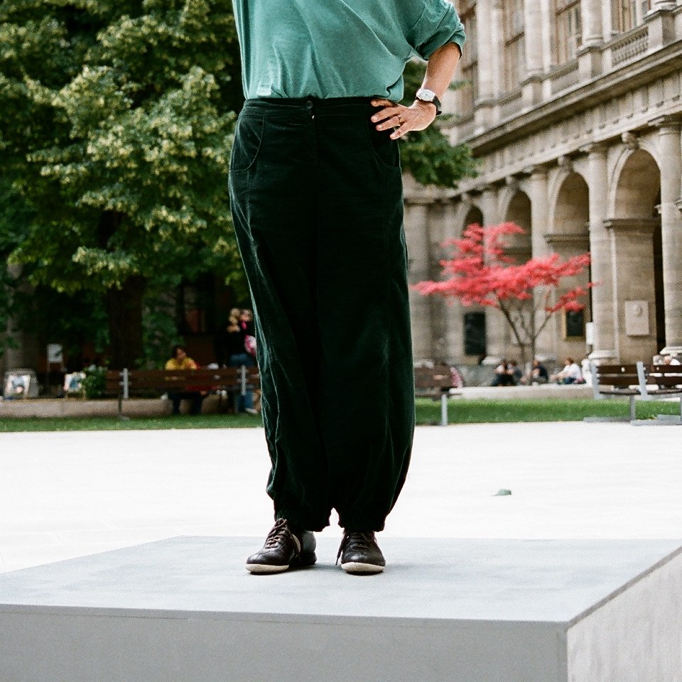 Historikerin Edith Saurer als „lebendes Denkmal“, Fotoserie im Zuge des Kunstprojekts „Der Muse reichtʼs“ von Iris Andraschek im Arkadenhof der Universität Wien