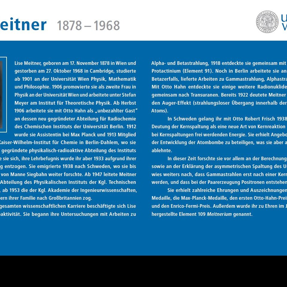 Informationstafel zum Lise Meitner-Hörsaales der Fakultät für Physik, 2009