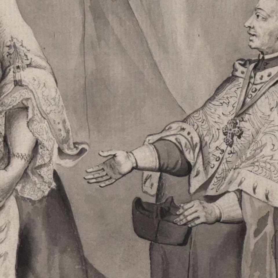 Kaiserin Maria Theresia empfängt den Rektor der Universität Wien Rektorsblatt aus der Hauptmatrikel der Universität Wien, Federzeichnung.