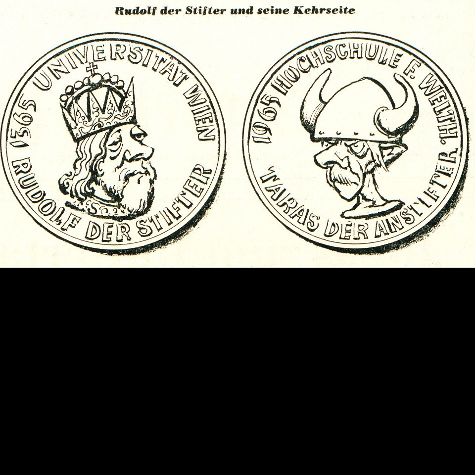 Die Karikatur, die die sozialdemokratische Arbeiter-Zeitung nur einen Tag vor Beginn der Feiern zum 600. Gründungsjubiläum der Universität Wien veröffentlichte, setzte die Jubiläumsfeiern in Bezug zur Borodajkewycz-Affäre, die die fehlende Auseinandersetzung der österreichischen Öffentlichkeit und besonders der Hochschulen mit der NS-Geschichte offenbarte.