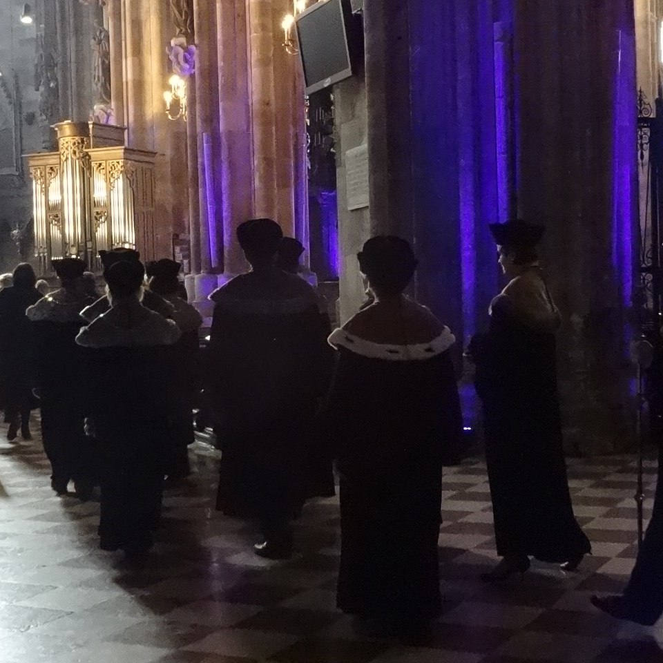 Feierlicher Einzug der VertreterInnen der Universität Wien und des Domkapitels St. Stephan in das Seitenschiff des Stephansdoms.