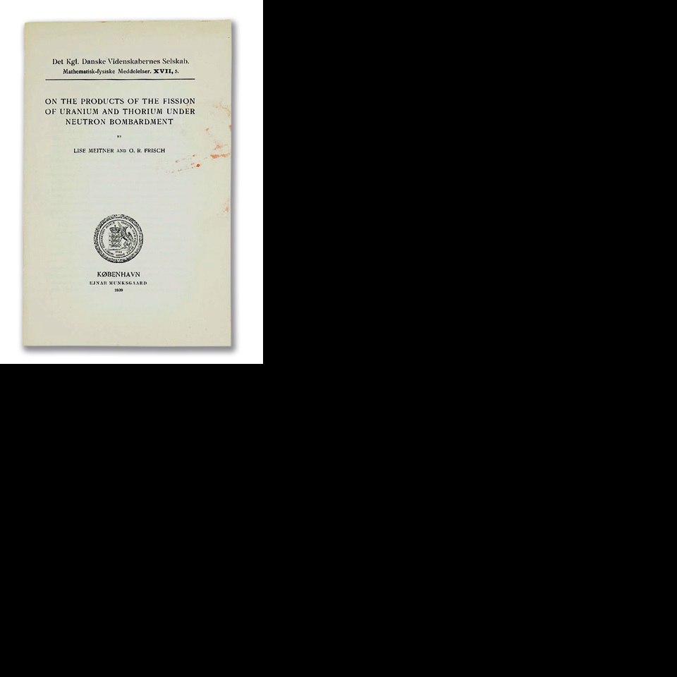 Lise Meitner und Otto Frisch, „On the Products of the Fission of Uranium and Thorium Under Neutron Bombardment“, 1939