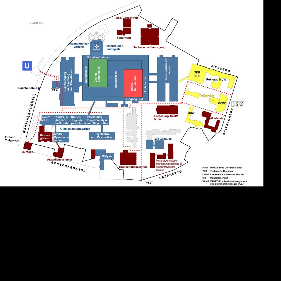 Neues Allgemeines Krankenhaus (AKH), Grundriss 2014 Quelle http://www.akhwien.at/image3.aspx?did=328 Bildgattung Plan