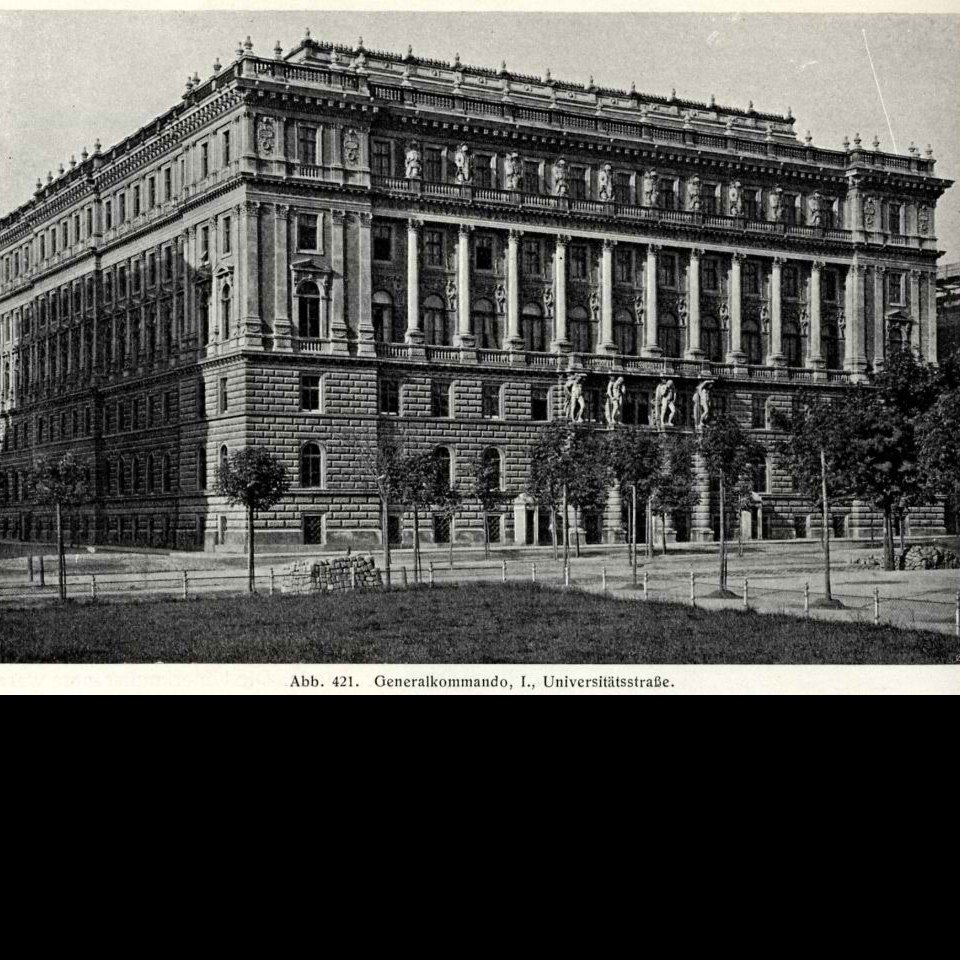 NIG Vorgängerbau, k.k. General-Kommando-Gebäude, Universitätsstraße 7, Arch. Wilhelm Doderer Quelle Wien am Anfang des XX Jahrhunderts Bd. 2, 1906 Bildgattung Fotografie