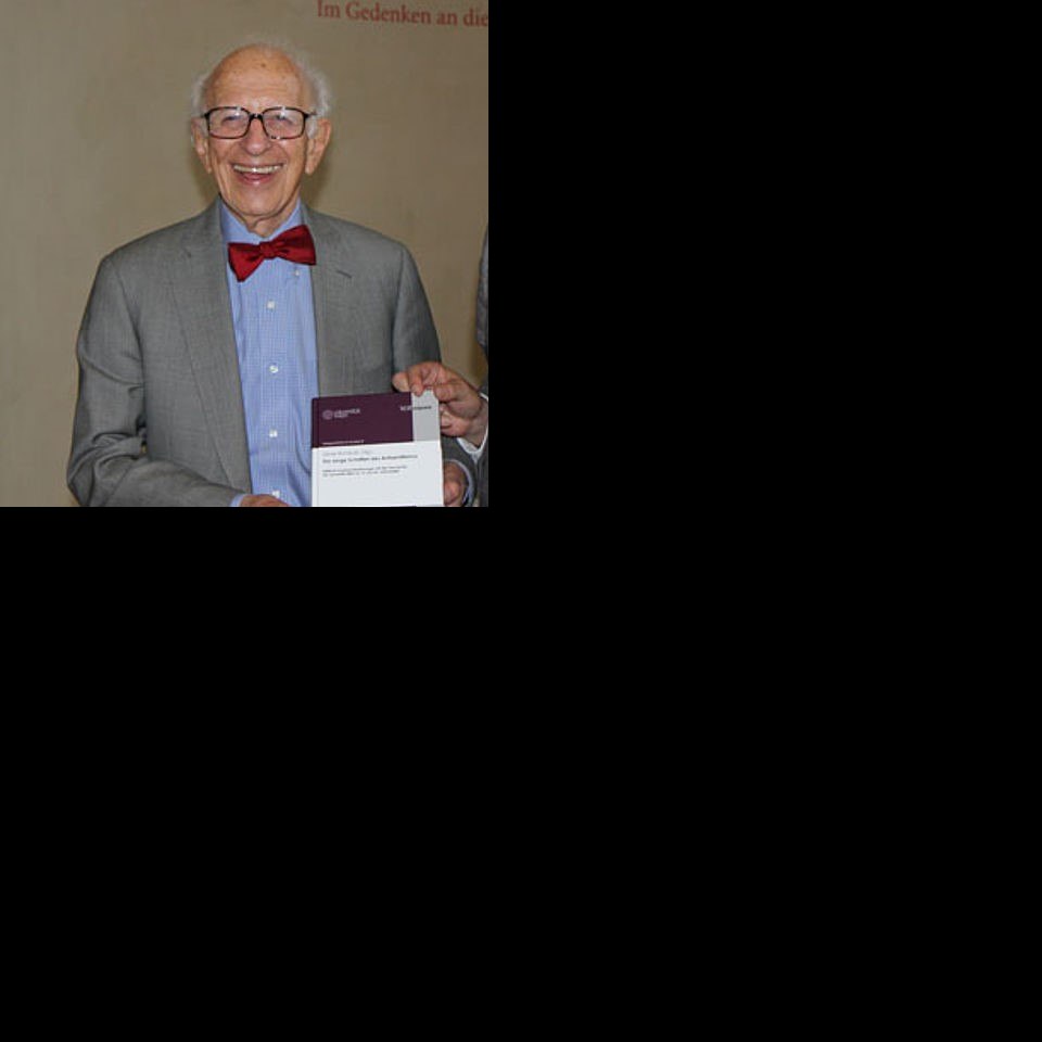 Nobelpreisträger Eric Kandel bei der Präsentation des Sammelbandes „Der lange Schatten des Antisemitismus“, Aula der Universität Wien Quelle https://medienportal.univie.ac.at/uniview/uniblicke/detailansicht/artik… Bildgattung Fotografie