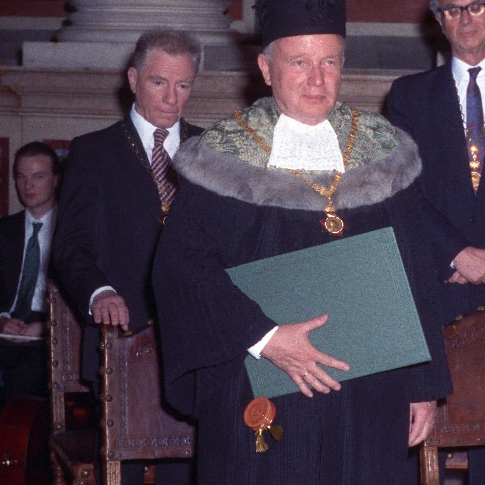 Otto Kraupp und Wilhelm Holczabek bei der Ernennung zu Ehrensenatoren der Universität Wien