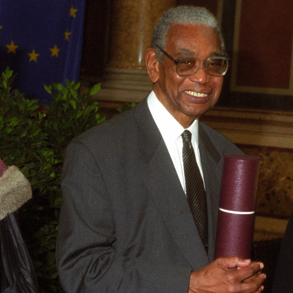 Philip Potter bei der Verleihung des Ehrendoktorats durch Dekan Gottfried Adam und Rektor Georg Winckler Bildgattung Fotografie