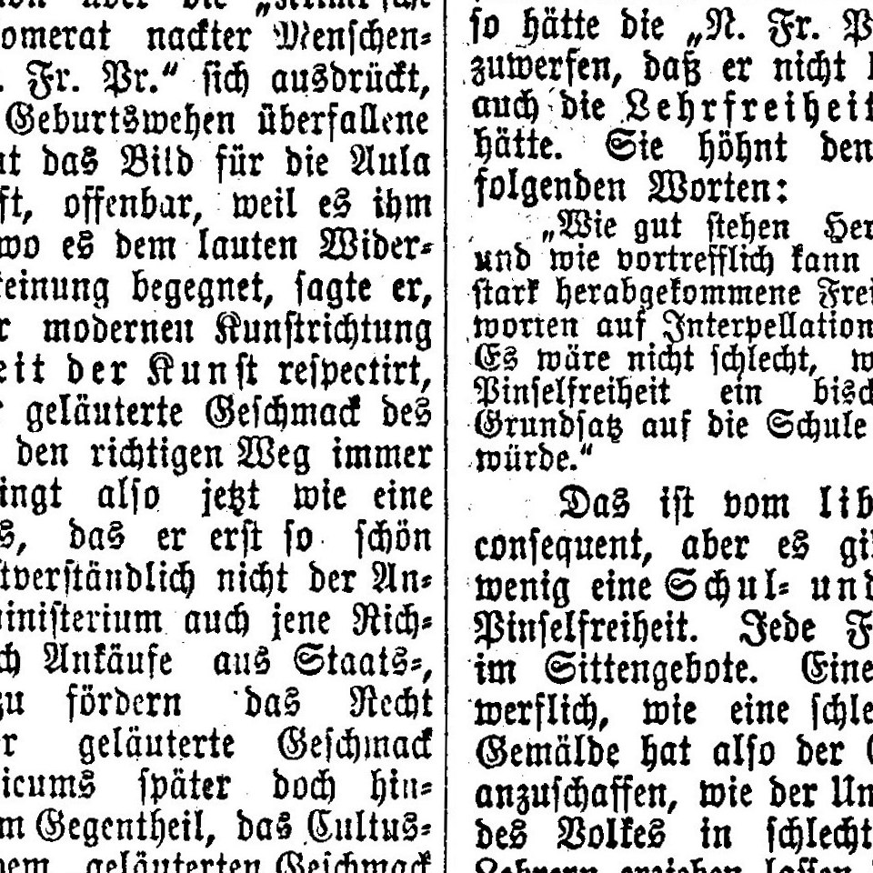 „Pinsel-Freiheit und Lehr-Freiheit“, Zeitungsartikel in „Reichspost“ vom 31. Mai 1901