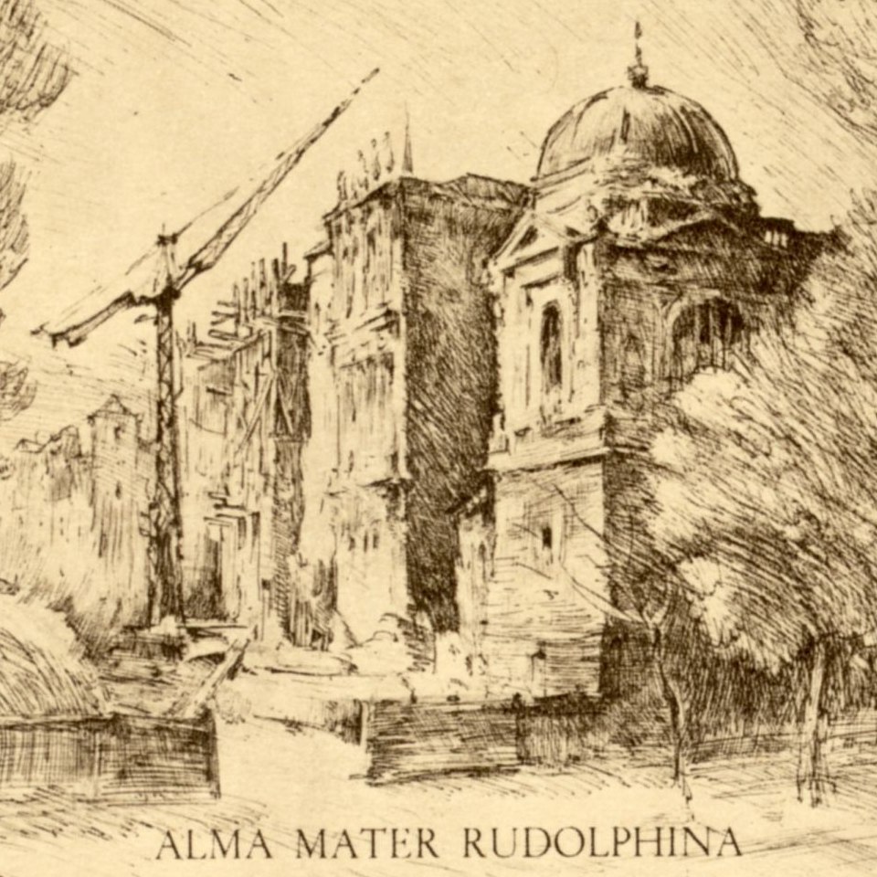 Postkarte als 2-Schilling-Bausteinspende für den Wiederaufbau der Univ. Wien, hrsg. vom Spendenkomitee unter dem Ehrenschutz der Universität Wien