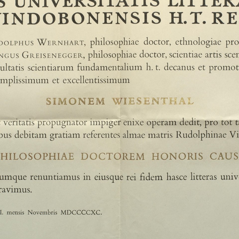 Probedruck des Ehrendiploms für Simon Wiesenthal