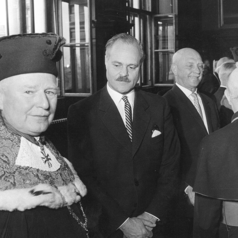 Prorektor Albin Lesky und Minister Theodor Piffl-Percevic bei der feierlichen Inauguration des Rektors Karl Fellinger Bildgattung Fotografie