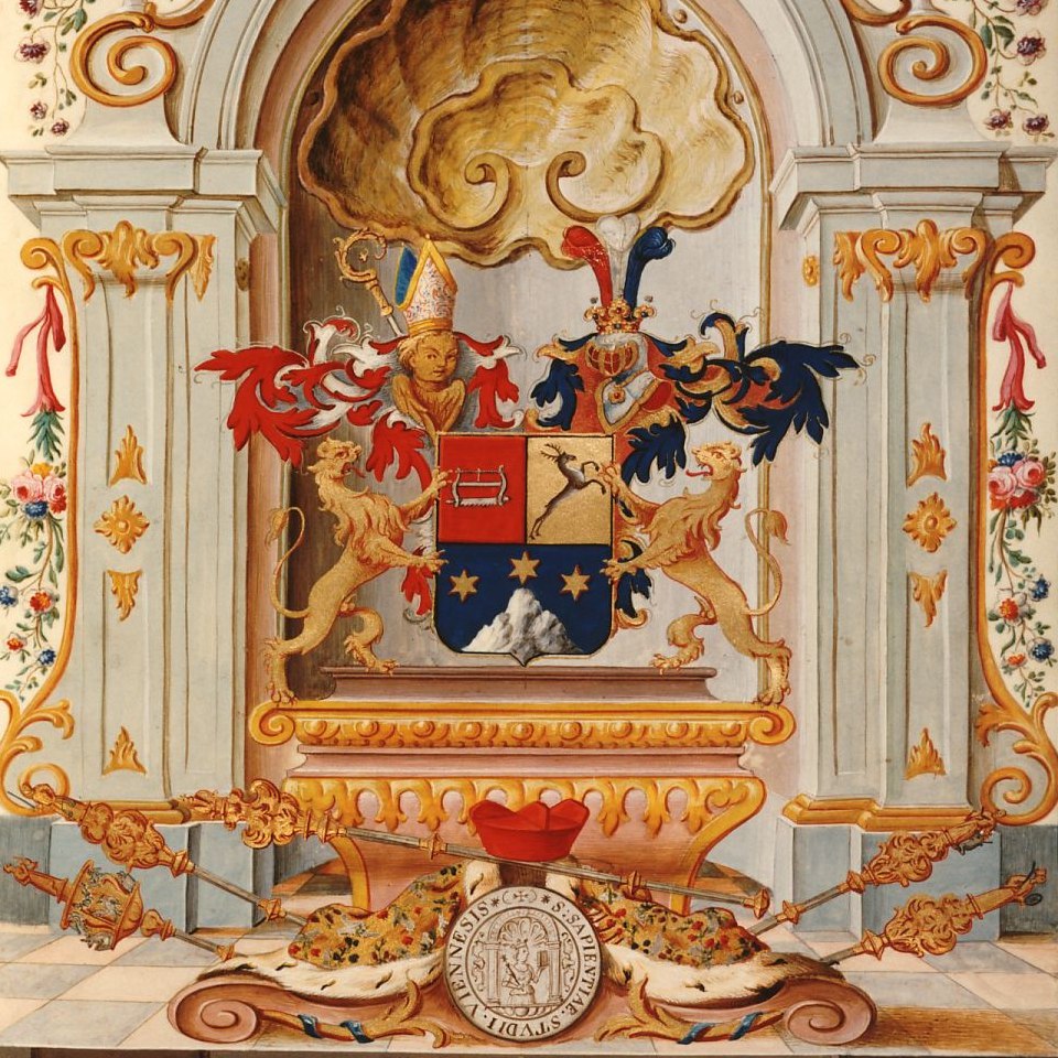 Rektorenblatt von Anton Carl von Serdagna (1762/63 Rektor) Quelle Aus der Hauptmatrikel der Universität Wien (Kodex M 10, fol. 71) Bildgattung Dokument