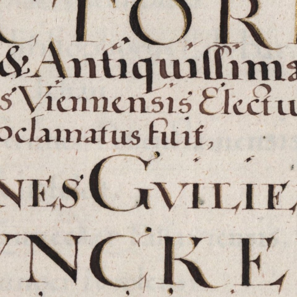 Rektorenblatt von Johann Wilhelm Juncker (Rektor 1656/57) Quelle Aus der Hauptmatrikel der Universität Wien (Kodex M 6, fol. 223) Bildgattung Dokument