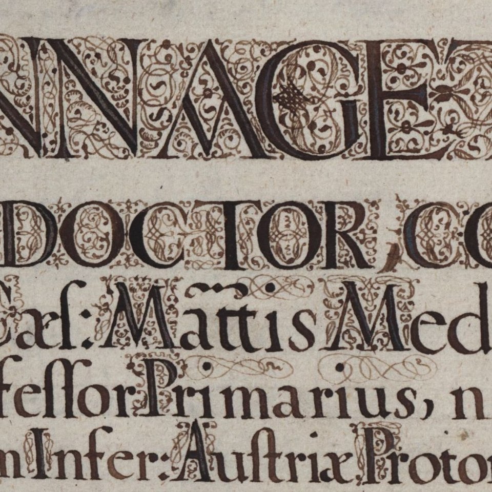 Rektorenblatt von Johann Wilhelm Mannagetta (Rektor 1640/41) Quelle Aus der Hauptmatrikel der Universität Wien (Kodex M 6, fol. 69) Bildgattung Dokument