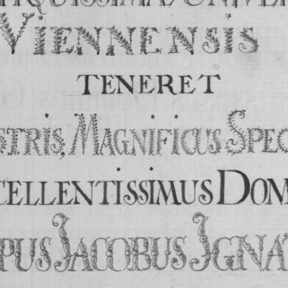 Rektorenblatt von Philipp Jakob Ignaz Anderler von Hohenwald (Rektor 1756/57) Quelle Aus der Hauptmatrikel der Universität Wien (Kodex M 10, fol. 53) Bildgattung Dokument